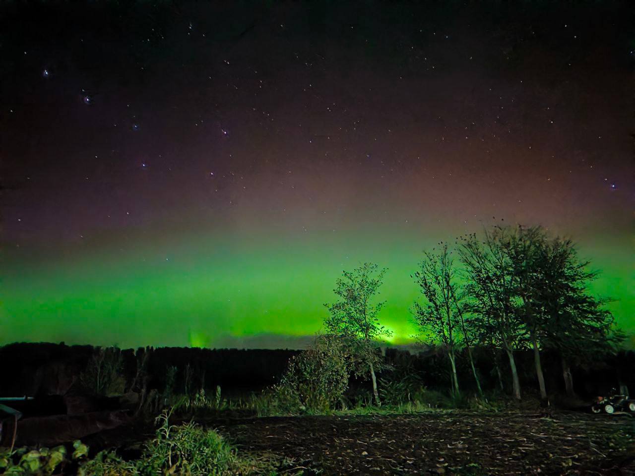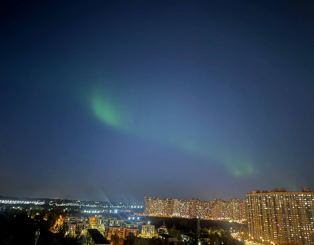 Полярное сияние озарило небо над несколькими регионами России. На фото — Свердловская, Ленинградская и Нижегородская области, а также Татарстан и Башкортостан.