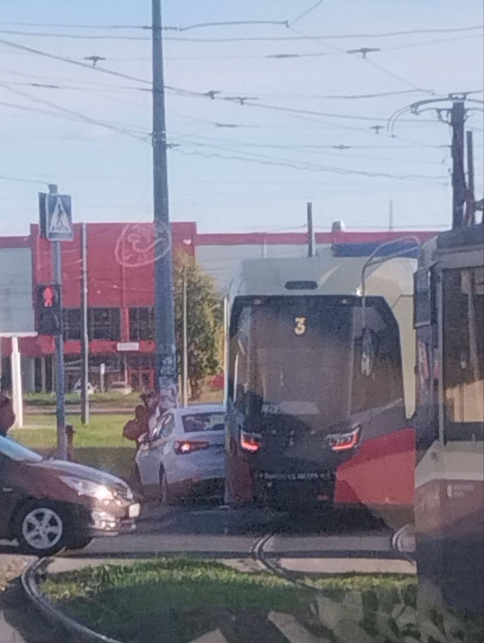 Там столкнулись легковушка и трамвай. На кольце также встали несколько трамваев №3 и №27.