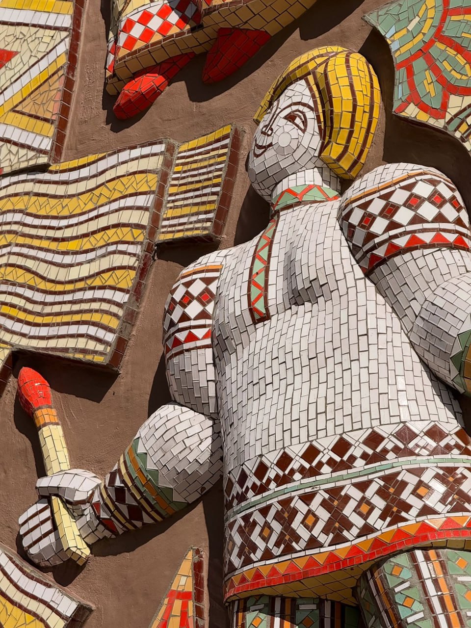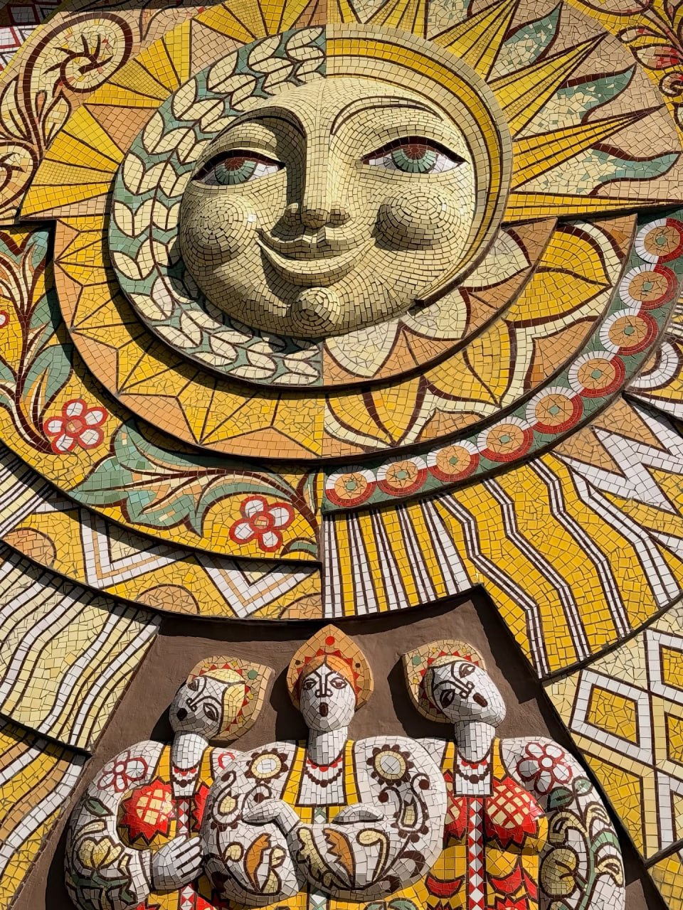 Воссозданная в Володарске советская мозаика «Народное искусство».