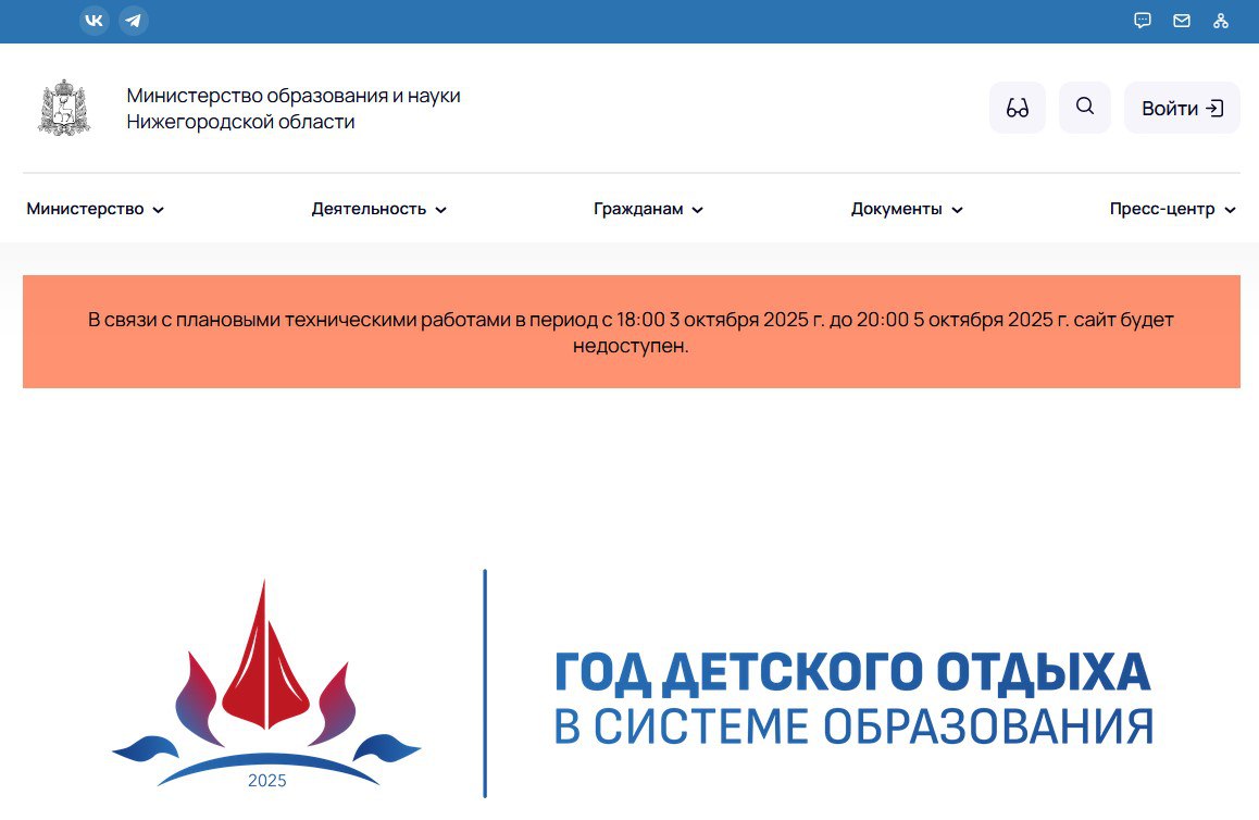 Сайт министерства образования Нижегородской области будет недоступен с 3 по 5 октября